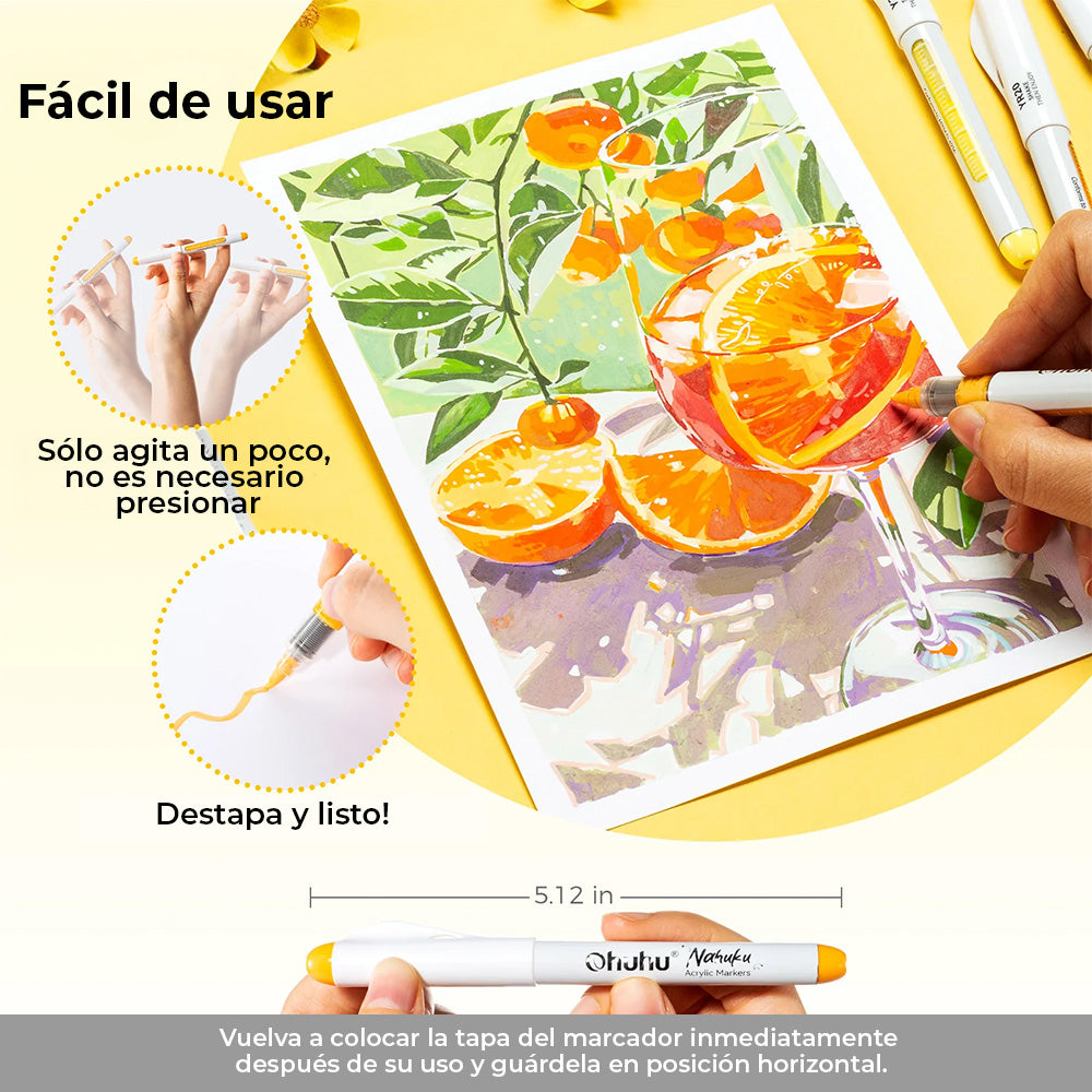 Explora el arte sin límites con el set Ohuhu de 24 marcadores acrílicos con punta pincel, ideales para artistas, estudiantes y amantes de las manualidades.