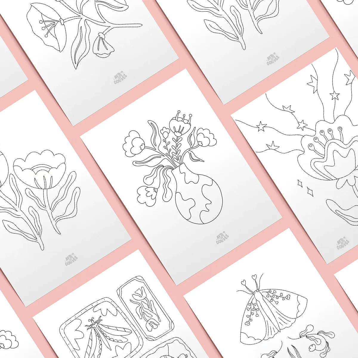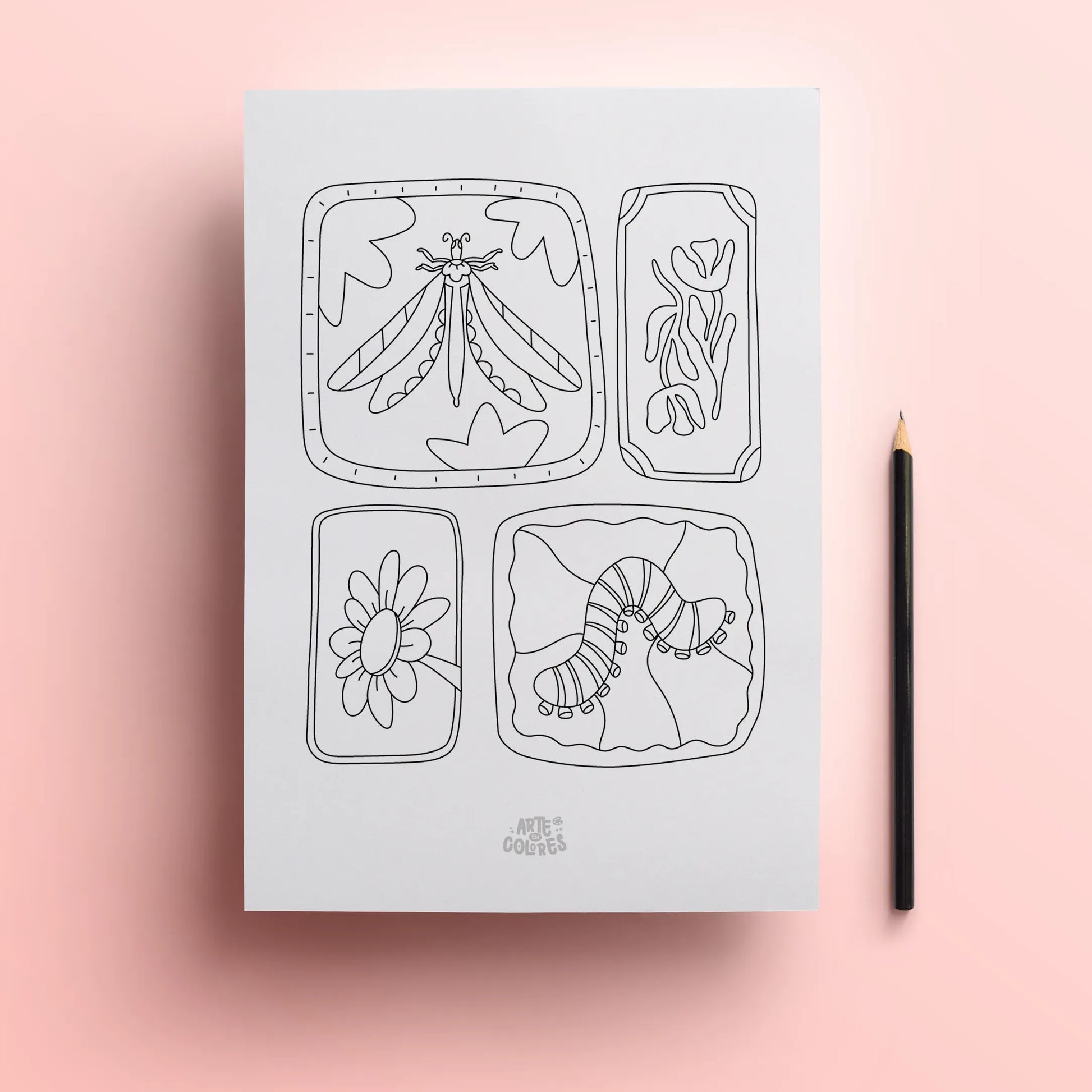– 6 láminas de dibujos de los diseños que aparecen en las imágenes